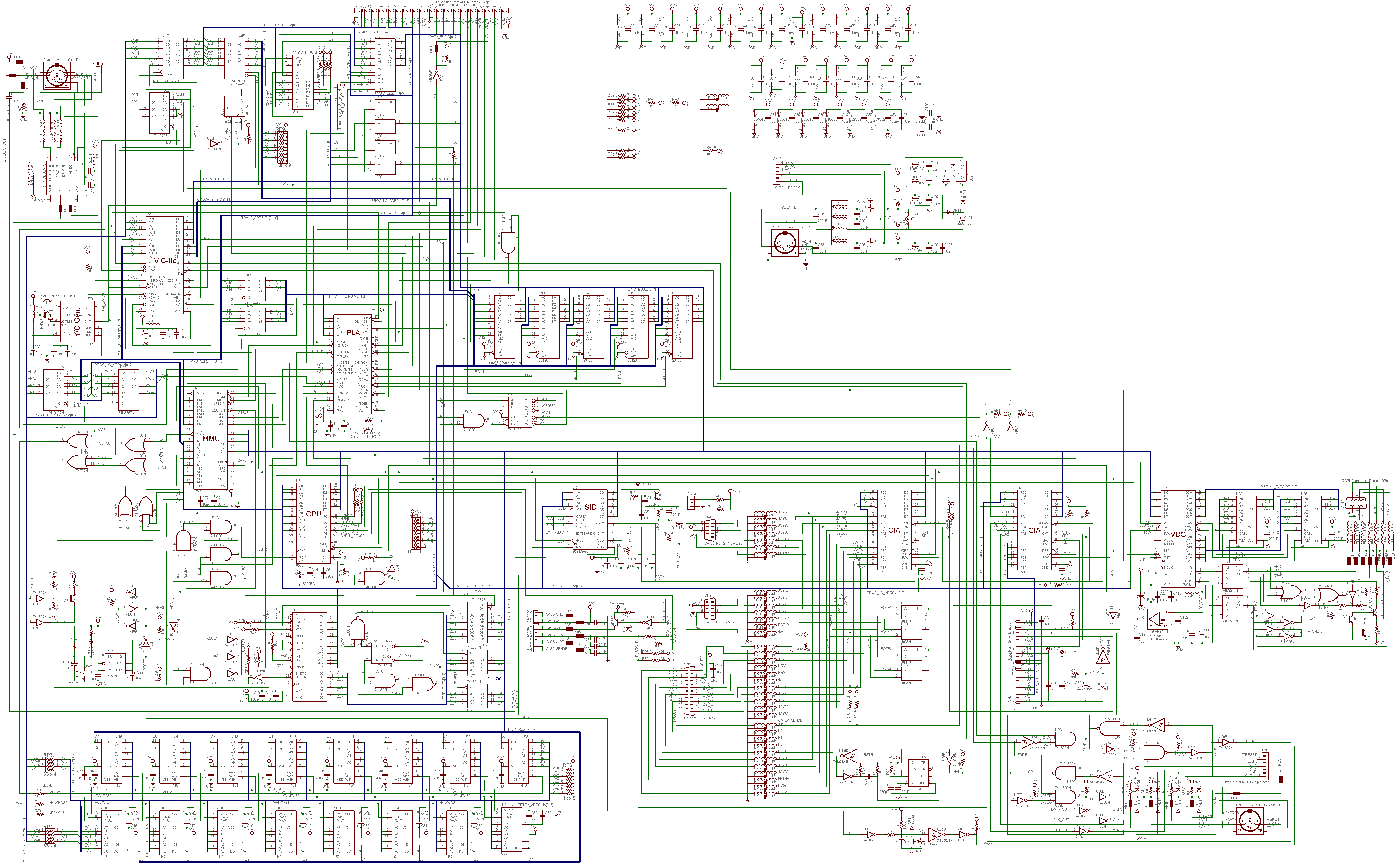 Below is a thumbnail view of a schematic of the C128 that I made myself.